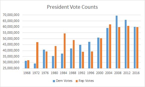 Contrairement à ce qu’on peu lire dans les médias, les sondages ne se sont pas complètement trompé pour cette élection. En fait, ils se sont moins trompés pour les intentions de votes de cette élection que lors de l’élection de 2012. Il y a quatre ans la moyenne des sondages donnait un petit pourcentage d’avance à Obama face à Romney, et il a finit 4% d’avance au niveau national soit 3% de marge d’erreur. Cette année ils donnaient en moyenne 3% d’intention de vote en plus à Hillary Clinton, et elle devrait finir par avoir environ 1% de voix en plus que Trump.