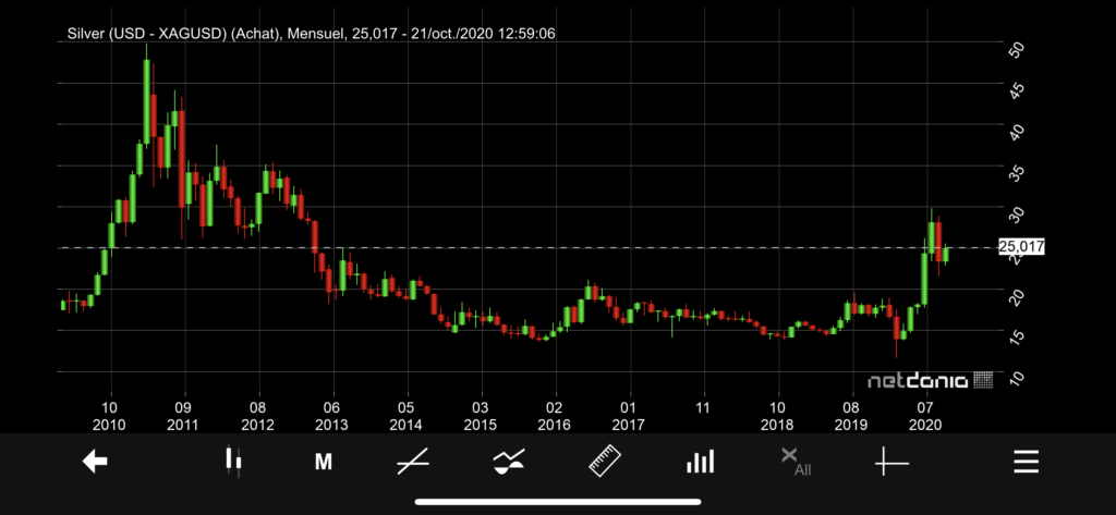 Ci-dessus le cours de l’argent su 10 ans en dollar